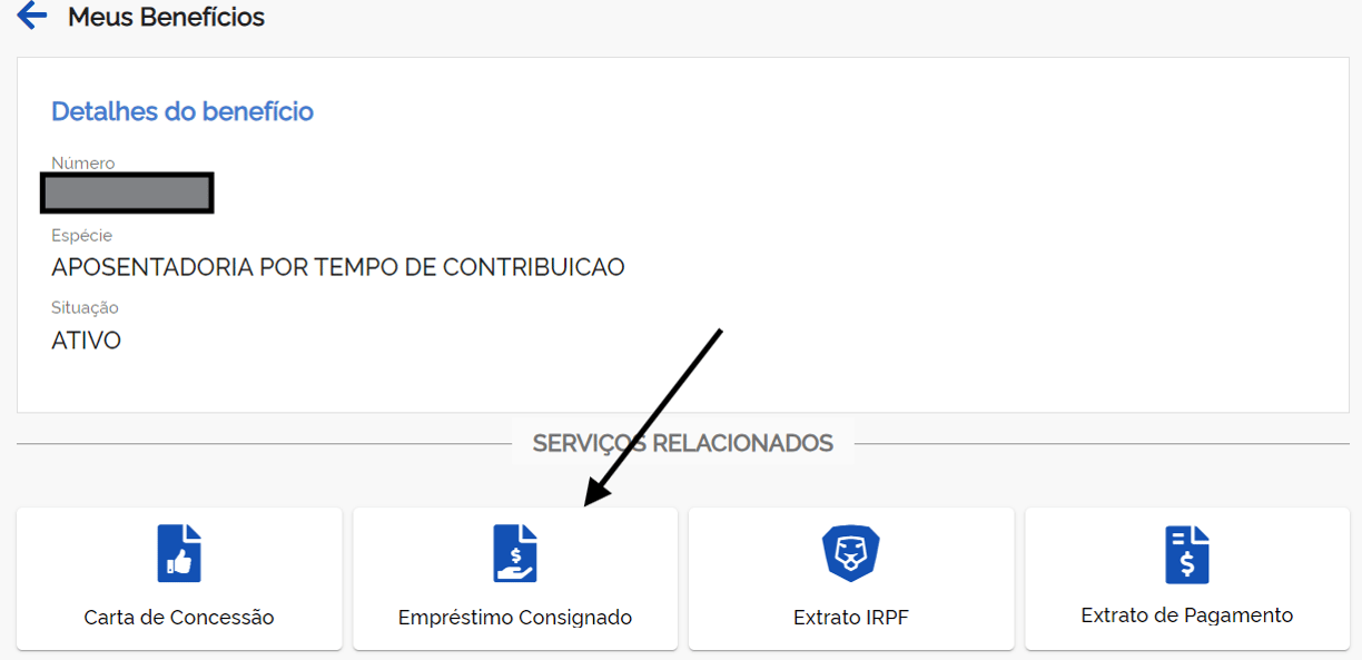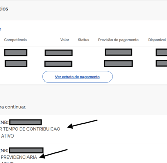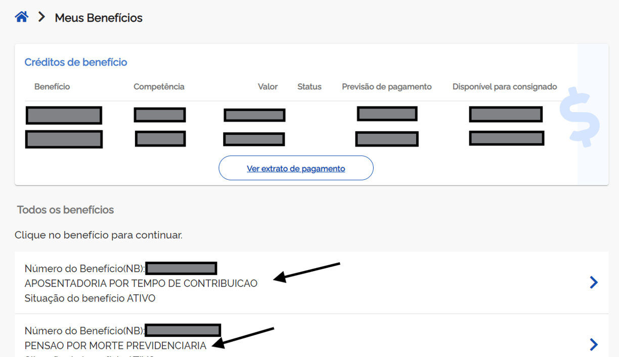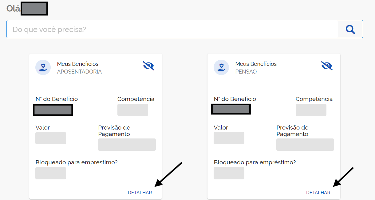Clique no botão Detalhar (no canto inferior direito) para acessar o extrato do benefício