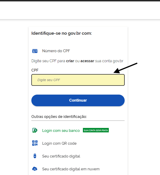 Preencha o campo com seu CPF e a seguir, com sua senha